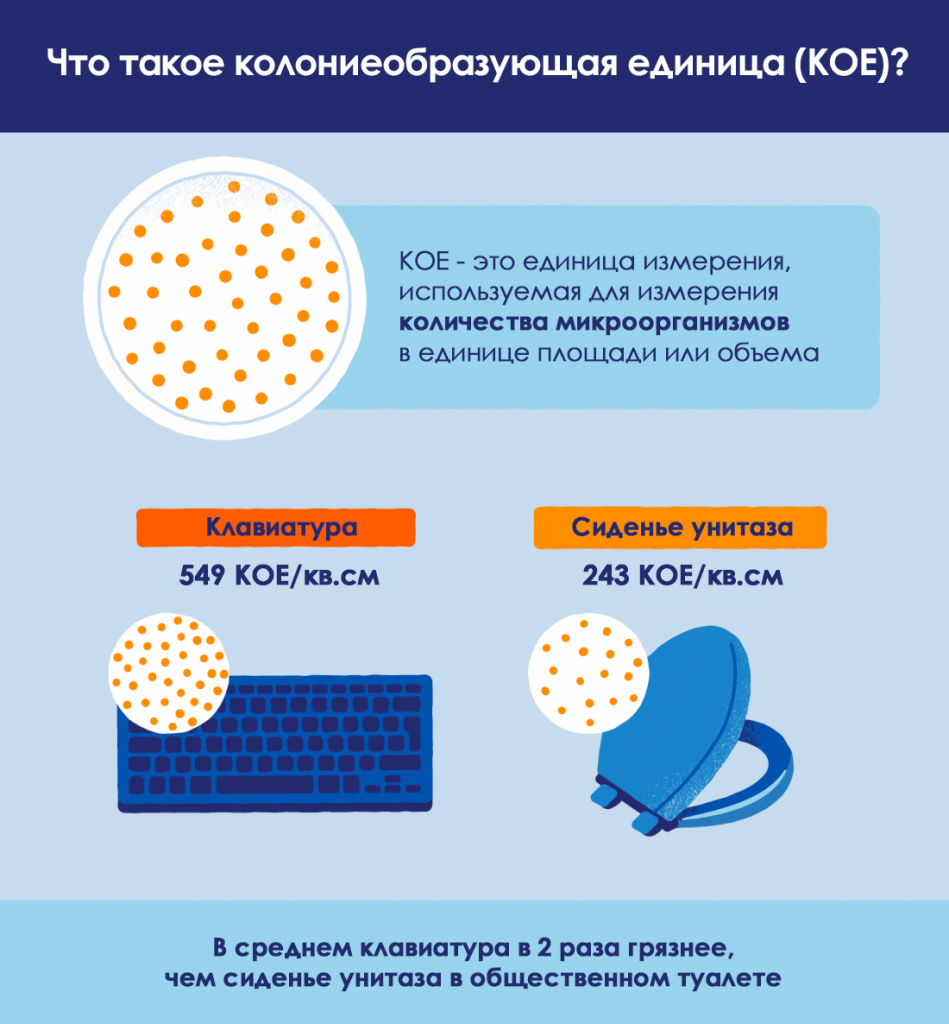 - Компьютерная мышь: 212 КОЕ/кв.см