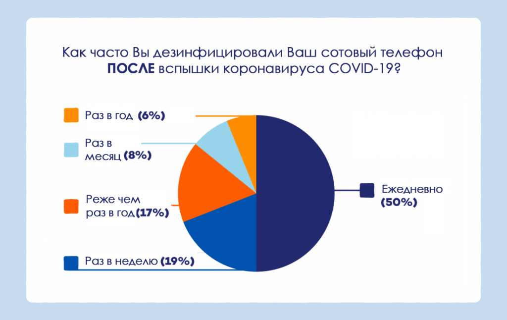 - 24% американцев дезинфицировали свои сотовые телефоны реже одного раза в год до вспышки COVID-19.