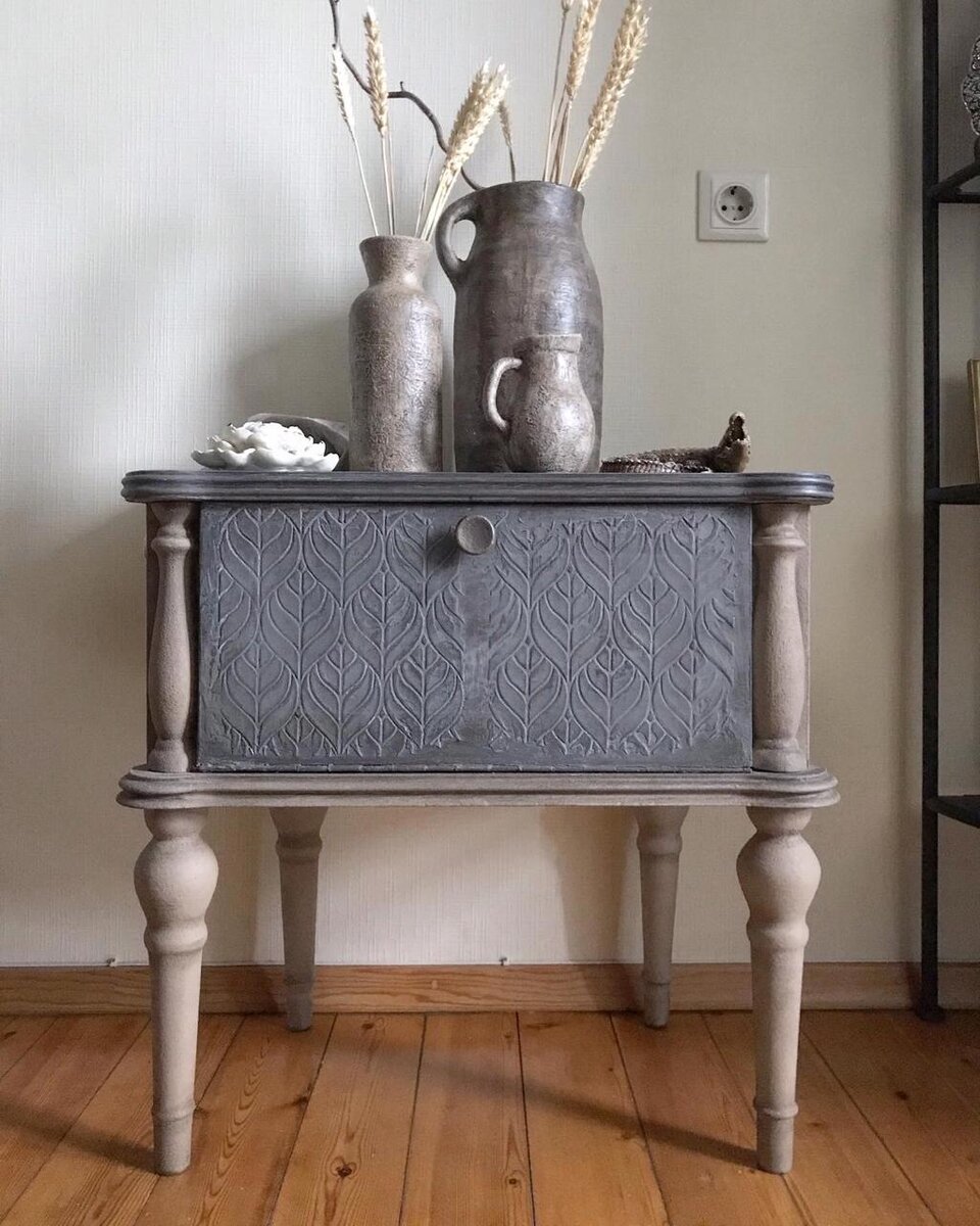 ➰На дверцу нанесла резиновым шпателем Бетон и его же через трафарет, получив объёмный декор⠀