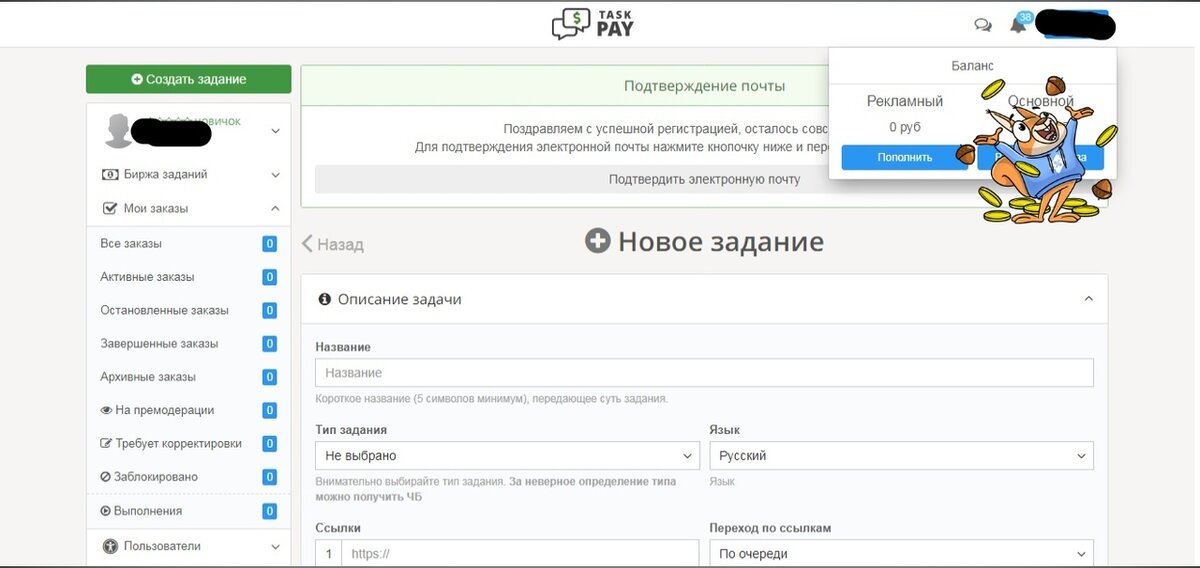 Многие сейчас создают каналы на YouTube, страницы в Instagram, Вконтакте и на других сайтах, чтобы стать популярными и извлекать прибыль из своей популярности. Кому-то нужно продвинуть свой бизнес (кафе, салон красоты и т.п.). Но как это сделать? Без вложений это практически нереально. Но вложения могут быть минимальными. На Бирже Task Pay вы можете разместить абсолютно любой заказ от элементарного посещения страницы и до регистрации на сайте или скачивания приложения. Конечно, исполнителям нужно будет платить. Но средняя плата за выполнение задания составляет несколько копеек. Для того чтобы разместить заказ, зарегистрируйтесь на Бирже Task Pay, пополните свой рекламный баланс и создайте задание. Плату, время выполнения, суть задания вы выставляете самостоятельно. Также на Бирже вы можете зарабатывать и сами. Никто не отменял, что разместив свое задание, вы не можете выполнять чужие. По мере выполнения заданий ваш основной баланс будет пополняться, и заработав определенную сумму (от 7
