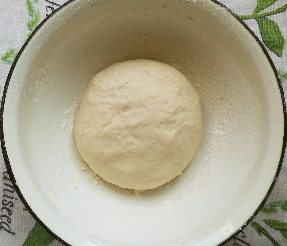 По классическому рецепту готовим дрожжевое тесто, чтобы получилось примерно 500-550 г готовой массы, формируем из него шар и, накрыв тканым полотном, оставляем на час (желательно в теплом месте). Параллельно перекладываем замороженную вишню (без косточек) в мелкое сито и, быстро промыв водой, оставляем ее разморозиться. Спустя час еще раз обминаем тесто, отделяем 2/3 и немедленн