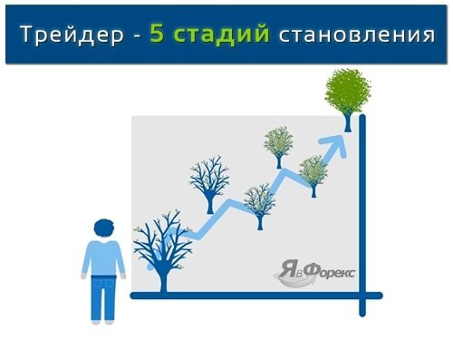 Как и во всех сферах деятельности, чтобы пройти полное обучение и приобрести нужные торговые навыки, новичок должен пройти марафон, который состоит из пяти стадий становления профессии трейдера на рынке Форекс. В сегодняшней статье мы перечислим и подробно поговорим об этих стадиях, чтобы Вы могли увидеть общую картину развития человека как трейдера.