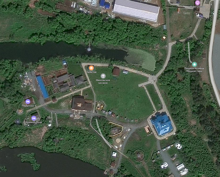 На одном из мысков Исети стоит имитация памятника культового зодчества образца 1800 – 1900 гг. Никольская часовня старообрядческая. Она станет частью свадьбы – если вы собрались венчаться в искомом парке. Строение очень живописно вписывается в пейзаж.