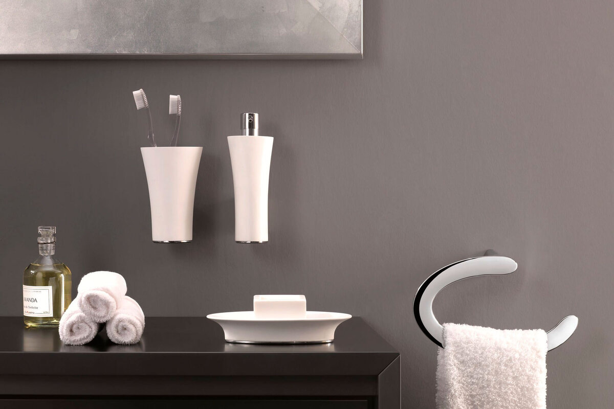 Стиль кроется в мелочах – об этом знают все дизайнеры интерьеров. Ванная комната конечно не исключение. Мыльницы, держатели для полотенец, полочки и стаканчики необходимы для удобства пользования санузлом. Эти мелочи могут создать атмосферу уюта или подчеркнуть общий стиль помещения. Давайте разберёмся, какие аксессуары для ванной бывают и для какого интерьера подходит каждая разновидность. Все аксессуары для ванной комнаты можно разделить по материалу изготовления на три вида: металлические, гелевые, керамические. Металлические аксессуары Очень востребованный вид изделий, который подходит для санузлов в классическом стиле, а также популярных дизайнов – лофт и хай-тек. Предметы могут быть покрыты хромом или бронзой, все зависит от эффекта, которого необходимо достичь. Например, в ретро стиле прекрасно подойдут аксессуары под бронзу, они сделают акцент на оригинальности дизайна. Такие модели часто сочетают в себе металл и стекло. Аксессуары из металла – не самый дешевый вариант, но их