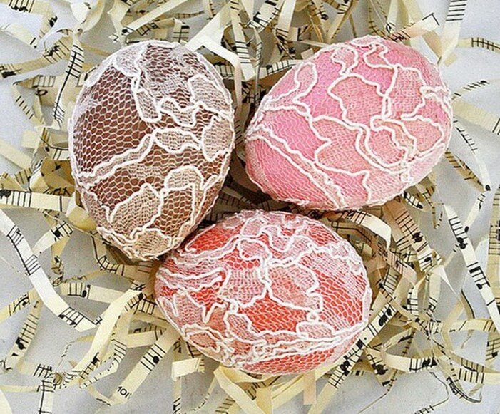 Скоро наступит светлый праздник Пасха! По сложившийся традиции, многие будут красить яйца.А какие же еще варианты декора существуют? Да их огромное количество!Давайте разберем несколько из них. Обтяжка кружевом. Если у вас есть небольшие, ненужные лоскутки кружева, можно ими задекорить яйца. Предварительно, можно окрасить яйца красителями, а затем с помощью кисточки нанести клей ПВА и обклеить кружевом. Декорирование пуговицами Необычно смотрятся яйца, обклеенные пуговицами. Даже человеку, далекому от рукоделия под силу справиться с таким заданием. Декупаж салфеткой. Можно вырезать из салфетки любые рисунки и с помощью клея приклеить нужную аппликацию. Сверху , для прочности покрывают клеем. Декупаж салфеткой и украшение лентами. А здесь яйцо еще украсили ленточками.Получилось очень интересный вариант декора. Украшение лентами и стразами Декор нитками и другими элементами. Обвязка крючком Это, конечно очень необычный способ.Но как мне кажется, для декорирования сваренных яиц он не
