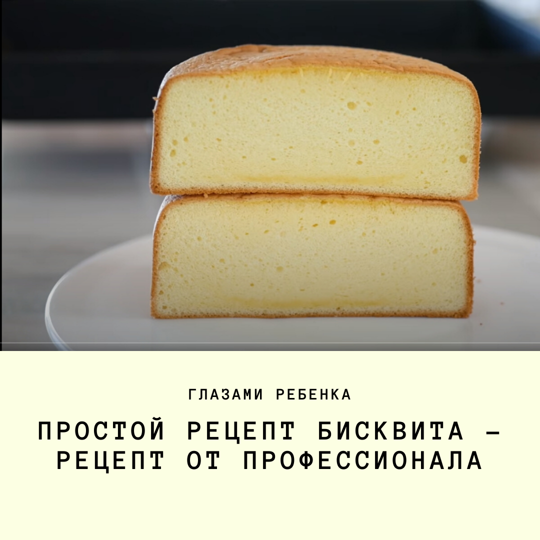 Этот рецепт я обещал выложить, когда выкладывал статью с рецептом чиабатты (итальянский хлеб). Рецепт бисквита, мной проверенный несколько раз. Получается бисквит как из магазина. Только в нем нет различных добавок. Рекомендую вам попробовать приготовить. Получится вкусно! Рецепт простой, быстрый и вкусный. Ингредиенты: Яйцо куриное - 3 штуки; Мука - 90 грамм; Сахар - 90 грамм; Молоко - 30 грамм; Масло растительное - 30 грамм; Соль - 1 грамм; Ванильный экстракт - 2 грамма. У меня НЕ было, добавил обычной ванили. Сложностей у вас в приготовлении НЕ должно возникнуть. Следуйте инструкции на видео. Внимание! Только, когда будете взбивать белки, сахар добавляйте по другому. Сперва взбейте белки до твердых пиков, а потом добавляйте сахар постепенно. Когда я готовил первый раз, как на видео, у меня плохо взбились белки. Поэтому бисквит получился НЕ пышный. Еще рекомендую подержать бисквит немного больше при указанной температуре или нагреть духовку выше, чем указано на видео. Бывает б