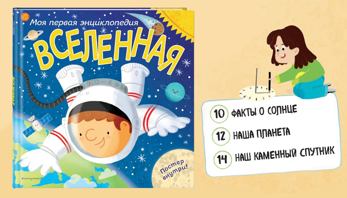 Приглашаем и Вас совершить необычное путешествие за пределы планеты Земля. Мы увидим такие места, куда еще не ступала нога человека, но может ступала нога инопланетянина? Смелые мореплаватели, покорители горных вершин, отважные полярники, исследователи безводных пустынь уже успели обследовать самые отдаленные уголки нашей планеты. А вот исследование ближайшего космического окружения Земли только начинается в наше время. Такую возможность дали нам созданные людьми космические аппараты, пролетавшие вблизи (а иногда и садившиеся на поверхность!) других небесных тел. Мы с вами не имеем возможности ощутить подошвами своих ног поверхность иных миров, и всё же наше путешествие будет не воображаемым, а реальным: мы будем рассматривать самые настоящие пейзажи тех мест, по которым прогуляться пока нельзя. С лучшими из них можно познакомится в книгах из нашей подборки: Малышей приглашаем отправиться в космос с атласом «Вселенная. Моя первая энциклопедия». Это первое знакомство, для самых мал