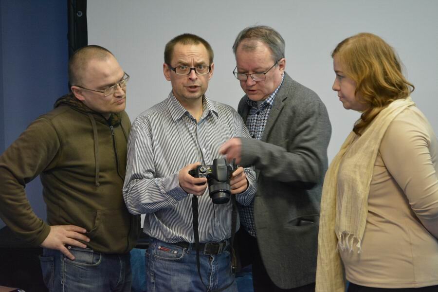 Сначала вопрос технический или даже фотографический. Вот мне сильно интересно стало, в чем причина что фото в условиях плохого освещения с этого мероприятия выглядят так неплохо? Это Nicon так рисует или всему виной синие стены и кресла? Фото без обработки. Последние два дня сессии «Сценарная мастерская» Кинофестиваля документального кино и медиапрактик «Doc.Урок.Губаха», что проходил на прошлой неделе в киноцентре "Премьер" были посвящены изучению материальной части и представлению проектных идей участников из музеев и библиотек городов Губахи, Чердыни и Перми. По окончанию, слушатели разъехались по домам, доводить проекты и постепенно переходить к съемочной части.