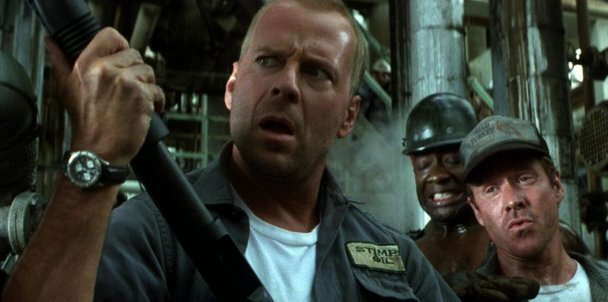 Голливуд снял огромное количество фильмов, в которых человечество либо гибнет, либо сталкивается с угрозой гибели. Перечислить их все в одном обзоре невозможно, поэтому выберем наиболее известные. Армагеддон В этом фильме к Земле летит гигантский астероид, и планету надо как-то спасать. По сравнению с другими фильмами про конец света здесь хотя бы сама угроза реалистична. Астероид действительно может столкнуться с Землёй и это приведёт к катастрофическим последствиям, хотя вероятность того, что это произойдёт в ближайшее время, невелика. Для того, чтобы взорвать астероид, к нему направляют не астронавтов, а команду буровиков. Ещё бы - пробурить в астероиде шахту для закладки бомбы очень сложно, намного сложнее, чем управиться с космическим кораблём. По пути корабль забирает топливо на станции "Мир", и здесь Голливуд вспомнил все самые дурацкие штампы про русских. В фильме огромное количество ошибок и ляпов. Интересный факт, что в NASA специально показывали фильм специалистам, чтобы те