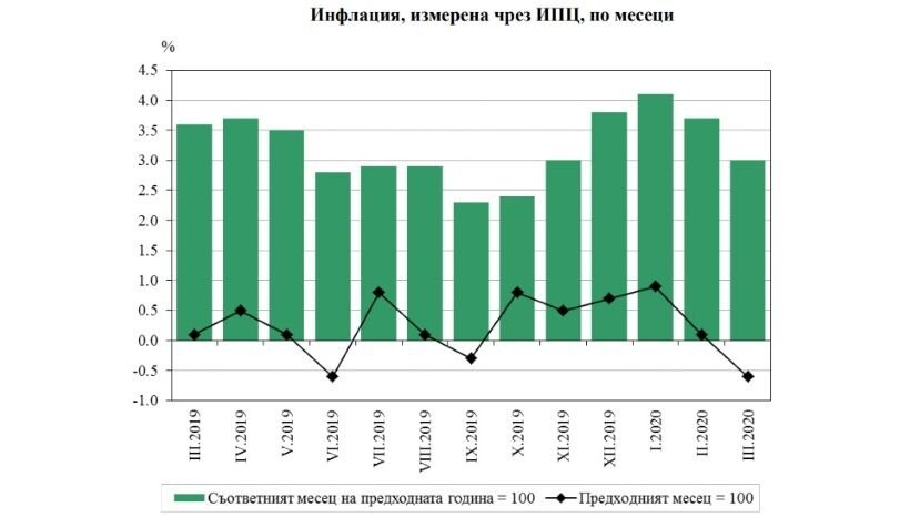 В марте по сравнению с февралем в Болгарии зарегистрирована дефляция в размере 0.6%, показывают данные Национального института статистики... В марте годовая инфляция в Болгарии была 3%