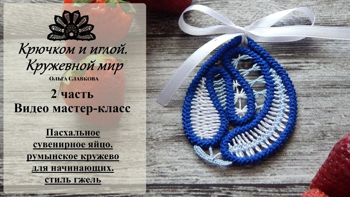 2# Пасхальное сувенирное яйцо. Видеоурок мастер-класс. румынское кружево для начинающих. стиль гжель