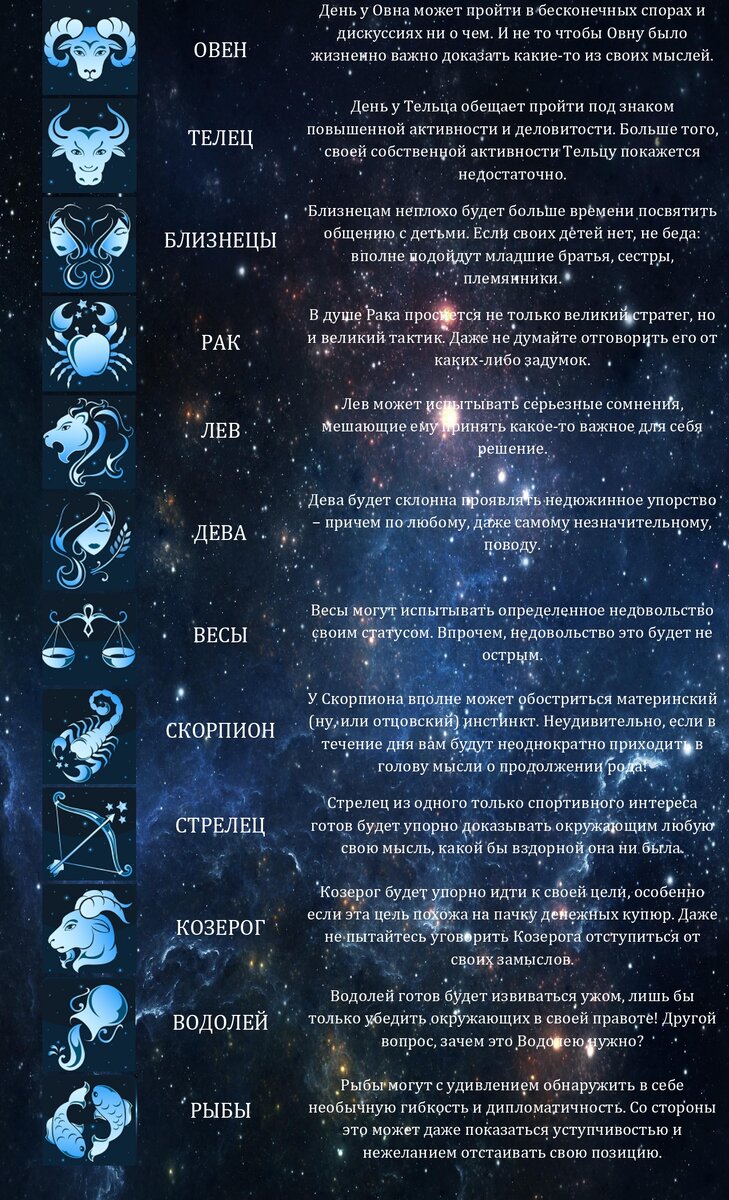Сегодня по гороскопу замечательный день, который имеет все шансы оказаться ступенькой на пути к вашей заветной цели. Сегодня все, посеянное ранее, обещает дать свои всходы, так что тех, кто долго и упорно шел к своей мечте, могут ждать приятные сюрпризы.