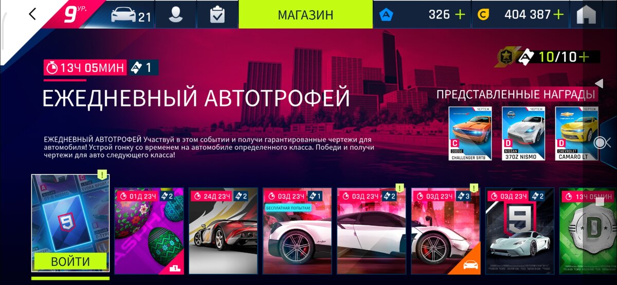 Всем доброго времени суток. Решил, сидя на карантине, написать статейку про асфальт. Строго не судите) Если вы уже немного покатали в карьере и обзавелись парой тройкой новых тачек, то советую присмотреться на ежедневные события. А в частности на ежедневный автотрофей. Тут каждый день можно получить чертежи на авто различных классов. Плюс к этому после прохождения 3х гонок выполняются сразу два задания из Ежедневных задач. Вы наверняка заметили, что при завершении гонок иногда выскакивает просмотр рекламы, и предлагает увеличить количество кредитов в три раза. Не всегда стоит смотреть эту рекламу, т.к. утроение может быть несущественным, а вы зря потратите от 15 до 30 секунд своей жизни) Советую не пренебрегать рекламой когда предлагают количество кредитов более 10000. Да-да, не все любят рекламу, однако, когда необходимо прокачать авто, чтобы дальше проходить карьеру, деньги уходят очень быстро. Казалось бы, вот у вас сейчас 500.000 (новички, поверьте, скоро накопится и столько), а уй