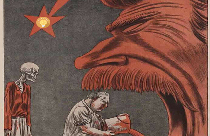 Пропаганда и политика Третьего Рейха наиболее полно раскрывается в карикатурах, основанных на противниках Германии. К тому же, зачастую под подобными карикатурами есть некий смысл или некое событие, которое повлияло на создание карикатуры. Провал битвы за французский Дьеп Под битвой за Дьепп здесь имеется ввиду морской десант вооружённых сил Великобритании и Канады на французское побережье Ла-Манша и атака на оккупированный немцами порт Дьеп на севере Франции в 1942 году. Можно сказать, прелюдия Оверлорда. При чём тут Сталин? И почему Черчилль вливает в него ведра крови? Как известно, с самого начала Великой Отечественной войны, Сталин требовал от Черчилля открыть второй фронт, т.к. на Восточном фронте сосредоточилось под 200 немецких дивизий. Кровь погибших британцев вливается ведрами Сталину в рот. Очевидно, что эта карикатура направлена на попытку внести "ссор в избу" союзников по антигитлеровской коалиции. Ненасытный молох На прошлой карикатуре Сталин пил, теперь же он решил пе