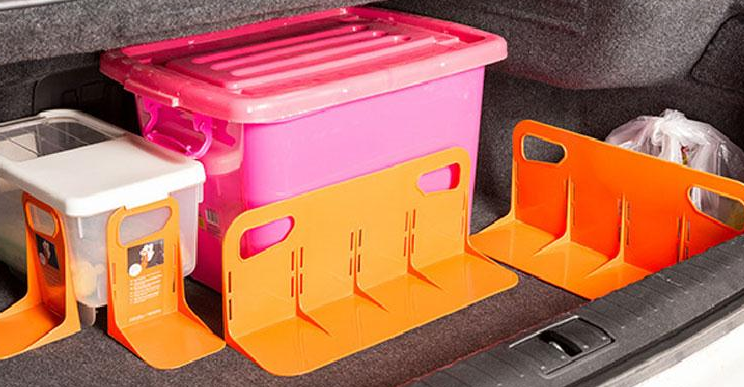 Каждый знаком с неприятной ситуацией, когда уложенные в багажник пакеты с продуктами, или иные вещи, по окончании поездки оказываются рассыпанными. Решить проблему помогут фиксаторы груза в багажнике. Изготавливаются они из легкого и прочного пластика, оранжевый цвет поможет легко найти их в багажнике.