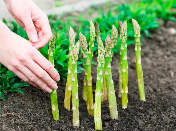 Съедобными являются молодые побеги, отрастающие от корневища весной, а зеленая вегетативная масса в пищу не употребляется и нужна только для фотосинтеза. Считается, что из семян выращивать спаржу нецелесообразно – саженцы дадут урожай только на третий год. Поэтому посадки лучше проводить корневищами (в среде агрономов их называют розетками), которые должны полностью находиться под землей.