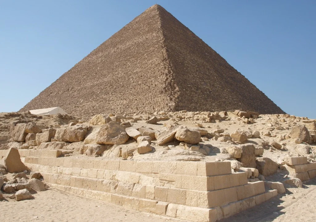 Пирамида Хеопса, Великая пирамида Гизы — крупнейшая из египетских пирамид, памятник архитектурного искусства Древнего Египта; единственное из семи Семи Чудес Света, сохранившееся до наших дней, и самое древнее из них: её возраст оценивается примерно в 4500 лет. Архитектором Великой пирамиды считается Хемиун, визирь и племянник Хеопса. Он также носил титул «Управляющий всеми стройками фараона». Предполагается, что строительство, продолжавшееся двадцать лет (время правления Хеопса). -Высота (сегодня): ≈ 136.5 м -Длина бокового ребра (изначально): 230,33 м (по подсчётам) или около 440 королевских локтей -Длина бокового ребра (сейчас): около 225 м -Площадь основания (изначально): ≈ 53 000 м2 (5,3 га) -Периметр основания: 922 метров -Средняя масса каменных блоков: 2,5 тонн -Самый тяжёлый каменный блок: около 35 тонн — расположен над входом в «Камеру царя». -По подсчётам, общий вес пирамиды — около 4 млн тонн (1,65 млн блоков х 2,5 тонн) -Количество слоёв (ярусов) каменных блоков — 210 (н