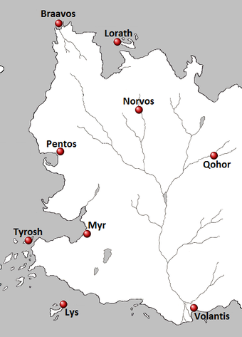 Привет Вам, дорогие читатели, продолжаю серию обзоров касательно географии Эссоса, его основных городов и других знаковых мест, которые я не затронул ранее. Сегодня продолжу представление Вольных городов и расскажу сразу о трех городах, расположенных на юго-западе Эссоса: Тироше, Мире и Лиссе. Действие сериала в этих городах не происходило, да и вообще в истории эти города не слишком задействованы, поэтому решил их сгруппировать исходя из их географического положения и плотных связей этих городов друг с другом.