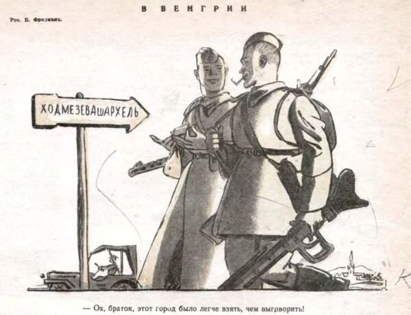 стория рассказана моим прадедом, участником ВОВ Было это в 1945 году. Великая Отечественная шла к концу. Наши войска уже продвигались по Западной Европе. У дороги показался указатель с надписью "Веrlin 100 km". И что-то в этой надписи было как-то совсем не по-нашему. То ли строгий готический шрифт, то ли надпись на языке уже по сути поверженного врага, то ли высокомерная аккуратность у пыльной дороги. Всё это не хотела принимать душа советского солдата. Нашёлся среди них шутник, который исправил ситуацию, дописал внизу: "Х.. ня — дойдём!". И сразу стало веселее! проходят мимо указателя измученнные сражениями, всеми тяготами и лишениями бойцы и их усталый угрюмый вид сменяется улыбками, неизвестно откуда беруться силы бодрее идти вперёд. В это время по дороге проезжал кто-то из высокого начальства и поинтересовался причиной внезапного веселья. Прямым текстом содержимое надписи доложить никто не решился, пришлось самомоу ехать почитать "первоисточник". Прочитав текст надписи, немедленно