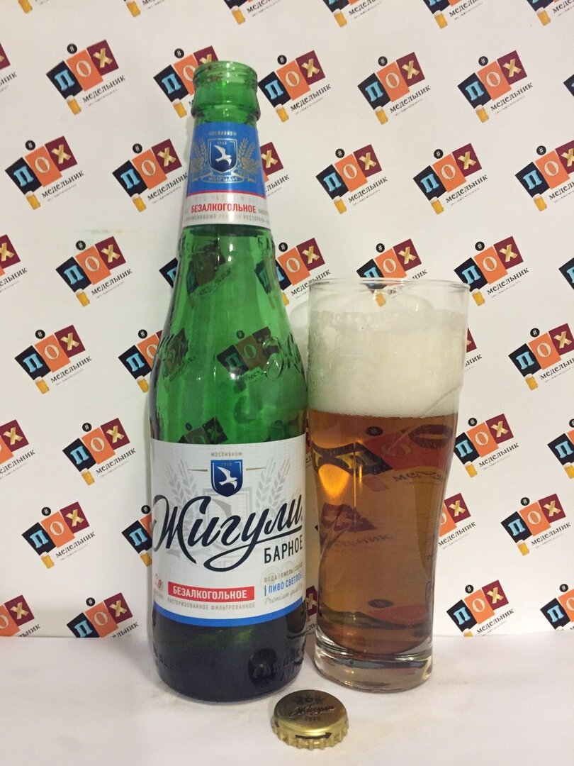 Статистика: пиво светлое пастеризованное фильтрованное, алкоголь не более 0,5% об., состав: вода питьевая, солод пивоваренный ячменный, хмелепродукты. Объём - 0,45 л. Изготовитель: Закрытое акционерное общество «Московская Пивоваренная Компания», Россия, Московская область, г. Мытищи По-братски: МПК решили снова выпускать «Жигули Барное Безалкогольное» в стекле, да ещё и с обновлённым дизайном. Это конечно же проще, чем придумать что-то новое. Если изменился дизайн, изменилось ли содержимое? Нет, содержимое осталось на высоте. Правда мне показалось, что оно стало иметь более весомую горчинку, и из-за этого отличается по вкусу от алкогольного варианта. Вообще по вкусу не сразу поймёшь, что оно безалкогольное. Да, конечно же к концу бутылки будет некий привкус, но это специфика данного стиля. Короче, можно брать, хуже не стало. Оценка: 6/10