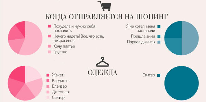 Первое, что приходит на ум, когда спрашивают чем должны отличаться емейл-рассылки для мужчин и женщин – конечно же цветом и обращением: Стереотипно, не правда ли? Как тогда быть с корпоративными цветами, если брендбук не содержит ничего розового или голубого? Это же получится не рассылка сайта, а буйство непонятных красок. А вдруг всё обстоит иначе… Пример письма Астратекс с шутливой инфографикой о совершении покупок. Полная версия Как известно, персонализировать / сегментировать подписчиков можно по любым данным, которые вам удалось узнать. Сегодня я хочу остановиться только на одном маленьком аспекте - разделение по полу. Просторами интернета гуляет много зарубежных и отечественных исследований на эту тему, но чуть покопавшись в психологии, можно найти немало отличий при покупках. Пако Андерхилл из компании Evirosell утверждает, что можно позвать с собой мужчину за покупками, тем самым сократив время пребывания в магазине до 4 раз, чем если вы пойдёте с подружками. Большинство мужчин
