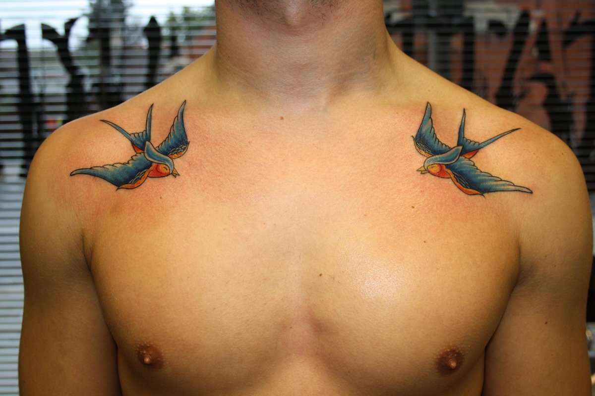 Ласточки очень хорошо смотрятся на ключице а так же под рёбрами .