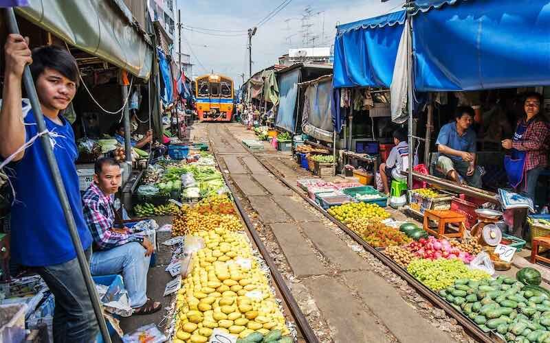 В 70 километрах от столицы Таиланда Бангкока находится рынок, который называется Меклонг. Местные жители зовут его "раскладушка". Все дело в том, что в 1905 году здесь была проложена железная дорога, которая прошла прямо по территории рынка. При этом, торговцы не спешили расставаться со своими торговыми точками, поэтому, рельсы и палатки находятся в вынужденном соседстве уже более ста лет. Несколько раз в день продавцы убирают свой товар в сторону, чтобы дать возможность пройти железнодорожному составу. А затем оживленная торговля продолжается. Еще одна достопримечательность Таиланда - плавучий рынок Дамноен Садуак, который находится в провинции Ратчабури. В переводе на русский язык название рынка означает "дорога без проблем". Торговля ведется прямо с лодок. Когда-то здесь торговали в основном рыбой, но сейчас можно купить практически все - овощи, фрукты, сувениры. Местные жители посещают Дамноен Садуак не часто, так как цены здесь гораздо выше, чем на других рынках. Основные клиенты
