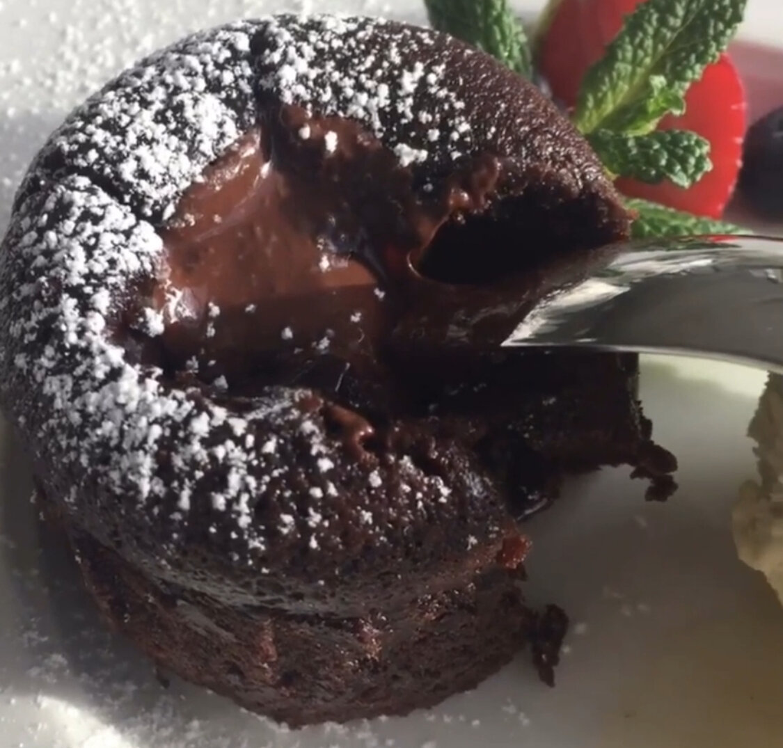 Мой мужчина в восторге от нежнейших шоколадных кексов. Обязательно рекомендую попробовать приготовить. Самый быстрый в готовке рецепт и не нужно бояться, будет вкусно. Классический шоколадный фондан подается с мороженым, посыпанный какао или сахарной пудрой. Здесь ваша фантазия может разгуляться и можно сверху добавить нежнейший крем и украсить по усмотрению. В моем случае я поделюсь простым сырным кремом и добавлю немного кондитерскую посыпку. ИНГРЕДИЕНТЫ Для шоколадного фондана. Для сырного крема. ИНСТРУКЦИЯ ПРИГОТОВЛЕНИЯ. На паровой бане растопите шоколад(2 шт) и сливочное масло (150гр). В маленькую кастрюлю налить немного воды и поставить на средний огонь. Я беру большую глубокую тарелку, чтобы она не проваливалась в кастрюлю и не касалась воды, туда добавляю ингредиенты и мешаю силиконовой лопаткой до однородной массы. Главное не доводить до кипения. Мешаем до однородной массы. Проверьте готовность перед тем, как достать из духовки (корочка по краям должна сформироваться, а