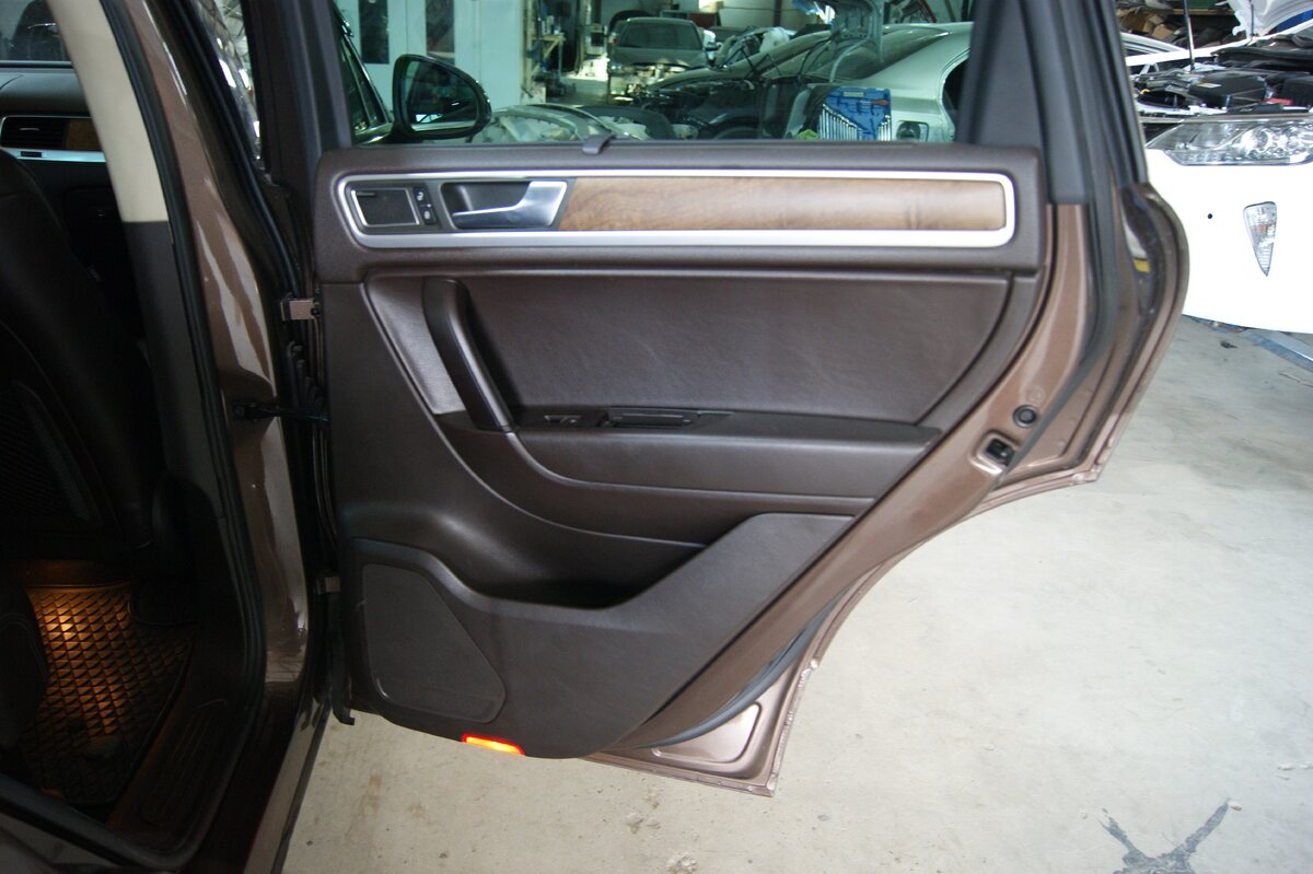Первым делом я снимаю обшивку с задней двери на Volkswagen Touareg второго поколения