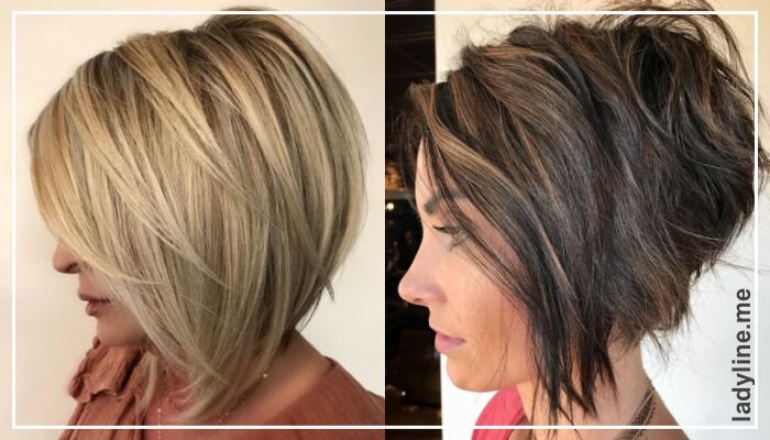 Трендовая многослойная стрижка «боб» идеально подойдет дамам с круглым и овальным лицом. Грубые черты лица сгладятся, а также скроются все несовершенства на лице благодаря хаотично расположенным прядям у лица. Объем волос на макушке выигрышно удлинит силуэт, благодаря чему даже полные дамы будут выглядеть более утонченно и стройно.