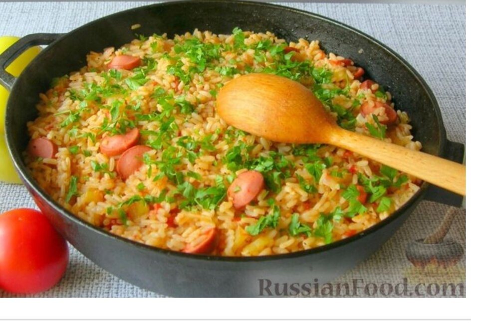 Сегодня готовлю простое, вкусное и сытное блюдо американской кухни, на основе риса, - джамбалайю. Это креольское блюдо штата Луизиана. Рецептов приготовления джамбалайи - огромное количество, как и нашего борща. :) Блюдо демократичное, допускается замена одних ингредиентов другими. Неизменными ингредиентами джамбалайи остаются рис и томаты. Если вы любите такие простые рецепты для обеда или ужина, то этот рецепт для вас! Продукты (на 6 порций)Сосиски (желательно подкопчённые или копчёные) - 400 гРис - 350 гЛук репчатый - 1 шт.Перец болгарский - 200 гПомидоры - 300 гЧеснок - 2 зубчикаТоматная паста - 1 ст. ложкаМасло растительное - 60 млПетрушка свежая - 1 пучокСоль - по вкусуПерец чёрный молотый - по вкусу
