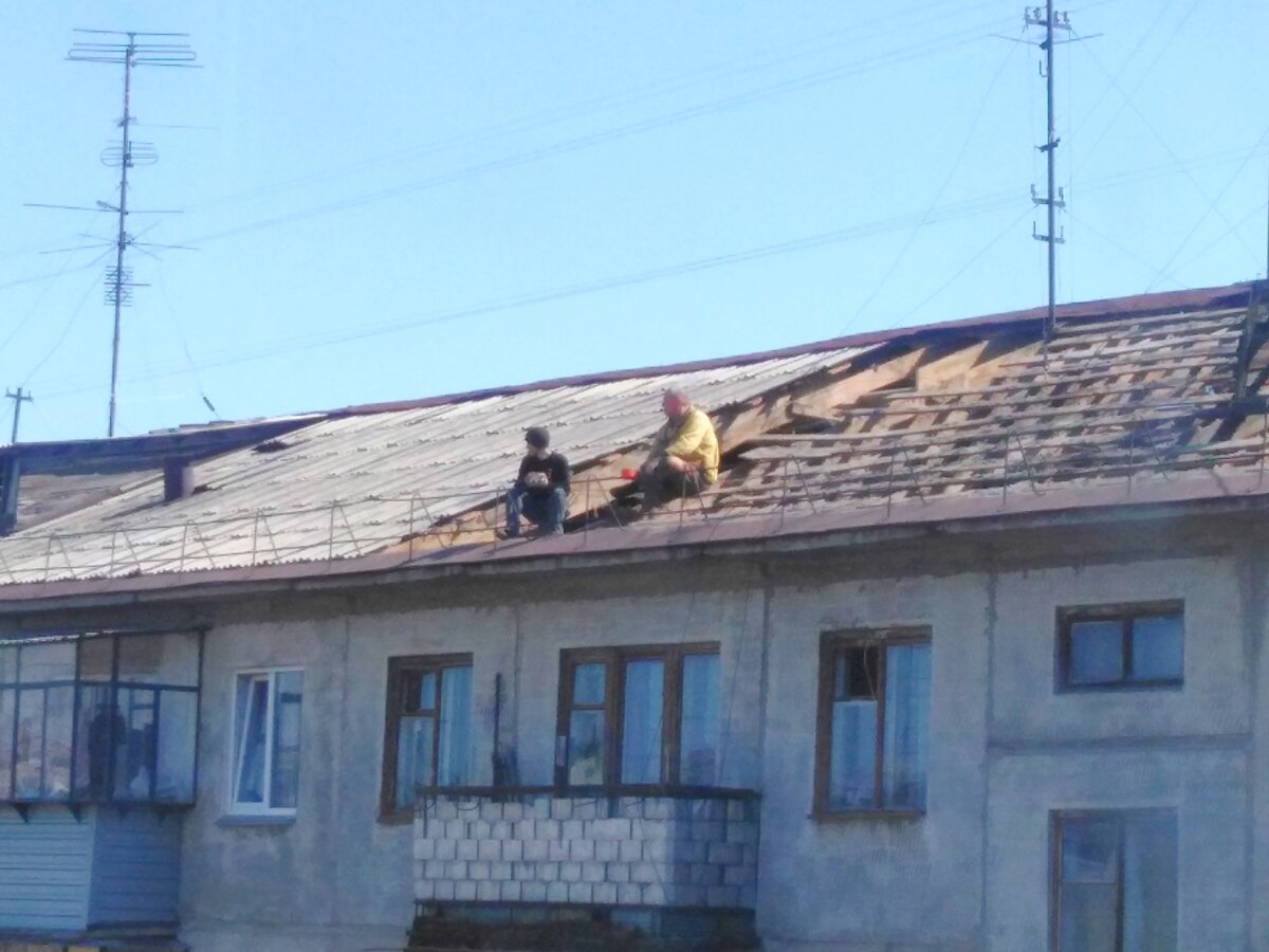 Главная новость дня: в доме справа от меня мужики меняют крышу. О-хо-хо! Значит, следующие пару месяцев меня ждёт бесплатное кино! Ха-ха. Их работа началась с того, что они сняли часть шифера, вышли на солнышко и долго, неспеша пили чай из термоса. Интересно, наверное, сидеть на крыше пятиэтажного дома и греться под солнышком с кружкой чая. Я завидовала их настроению. Захотелось на улицу. На высоте мужики ходили уверенно, без всякой страховки. Парень помоложе подошёл близко к краю и пилил карниз у самой стены! Его ничто не поддерживало, и я поражазилась, насколько спокойно он делал опасную работу. Постепенно мужиков становилось больше, а крыши - меньше. Сбоку выросли пачки стройматериала: шифер и доски. Много досок. Пока что это всё старый материал, его аккуратно сняли и сложили в ровные пачки. Потом, наверное, также аккуратно принесут новый, а этот уберут в утиль. Всё-таки зря я гоню, что ничего в нашей стране не делается для людей. С тех пор как губернатор сменился, чинить стал