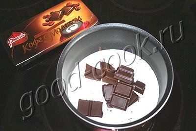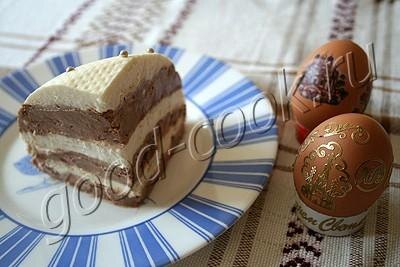 Пасха красивая и оригинальная на вид. Желательно сделать полоски как можно более тонкими. Консистенция очень нежная, тающая. Вкус кисловатый (любителям сладкого рекомендую увеличить количество сахара). Сильный шоколадный аромат. По величине пасха из этого количества продуктов получается очень большой. Подборка рецептов к Пасхе здесь. СОСТАВ 600г творога, 500г жирных (30~40%) сливок, 200г чёрного молочного шоколада, 100г сливочного масла, 120г сахарной пудры, ~1 стакан разнообразных цукатов и мелко порезанных сухофруктов, при необходимости - 200г жидкой (15~20%) сметаны посмотреть калорийность» В маленькую кастрюльку отлить 1/4 часть сливок и положить туда поломанный шоколад. Поставить на самый маленький огонь и довести при помешивании до полного растворения шоколада. Снять с огня и оставить остывать. Остальные сливки взбить в твёрдую пену. Творог разделить на 2 части.