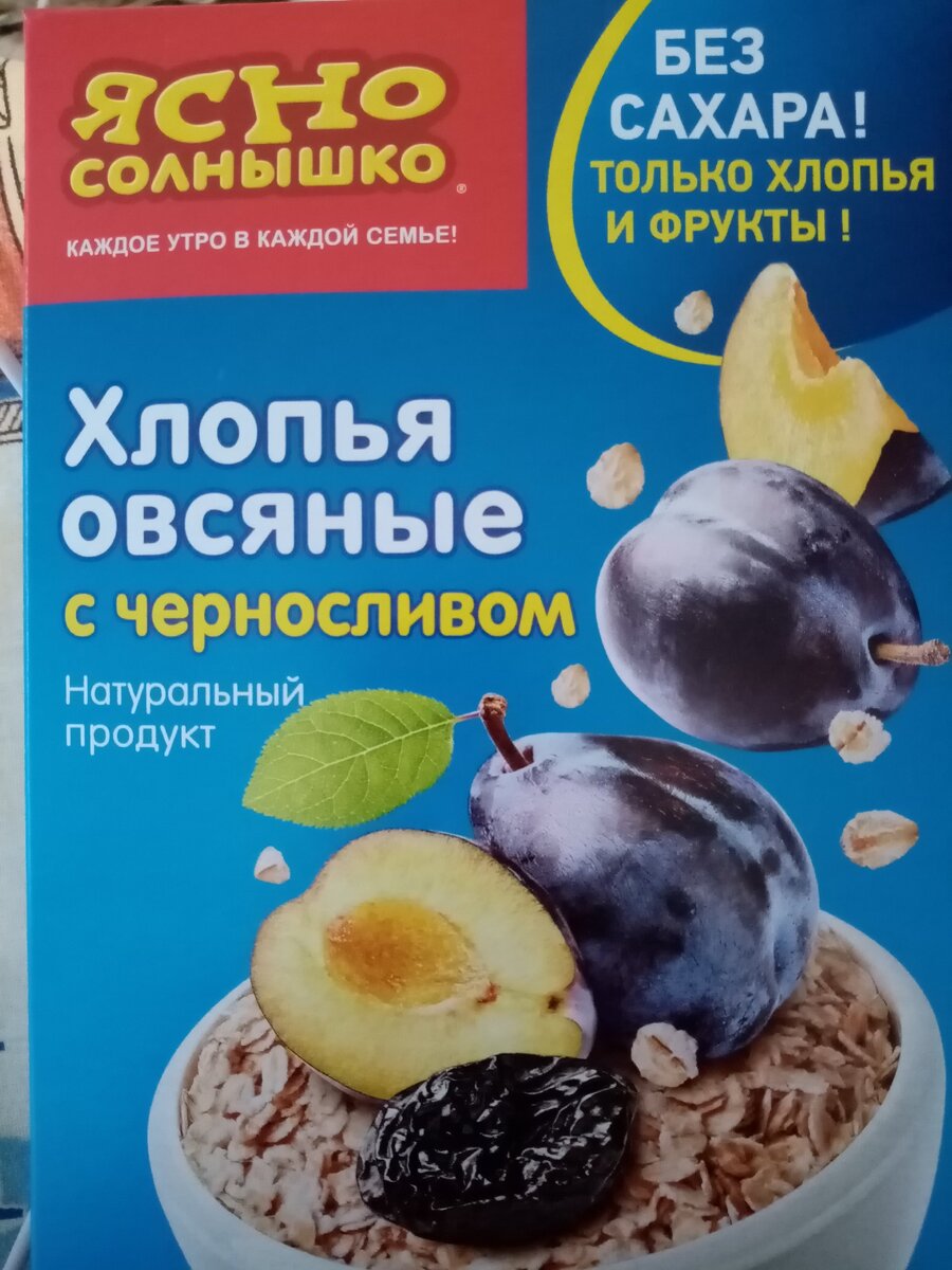 Вот такую кашу я покупаю в магазине "Победа". Она недорогая. Я брала по акции за 58 рублей. Вес 300гр. Мне очень понравилось, что там есть чернослив и нет сахара. Еще там есть овсяные хлопья с яблоками, клюквой. Я люблю чернослив. Я раньше варила кашу, а потом резала чернослив и добавляла. А тут уже все готовое. Желательно варить овсянку на воде, для тех кто сидит на диете, но я люблю все каши на молоке. Никак не могу себя заставить варить на воде))) Но нашла себе такой хороший вариант. Воду и молоко беру поровну, то есть полстакана воды и столько же молока. Может в будущем привыкну есть каши на воде))) Такую кашу готовлю в микроволновке. Это так удобно. Беру глубокий контейнер, Кладу 5 столовых ложек геркулеса, наливаю полстакана молока и столько же воды. Размешиваю и ставлю на высокую мощность- на 4 минуты. Обязательно, на последней минуте последить, как только каша достигнет верха- быстро отключить микроволновку. Вытащить контейнер, закрыть крышкой. Пусть постоит минуты 2.