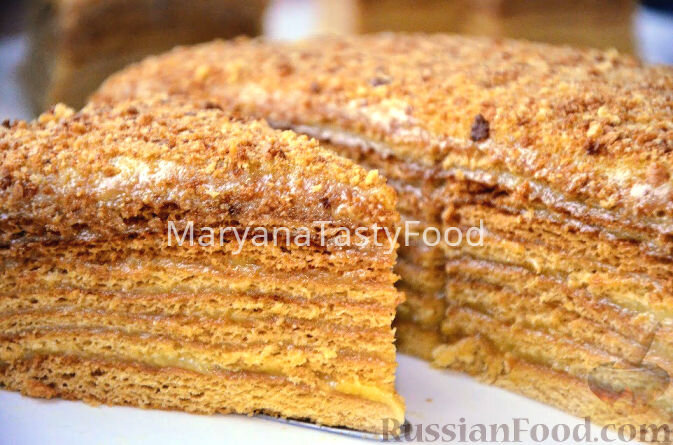 Самый вкусный и любимый торт "Медовый пух" или "Медовик"! Нежные, тающие во рту медовые коржи, пропитанные воздушным заварным кремом, - незабываемый вкус детства! Медовый торт получается о-очень вкусным, нежным, воздушным и пушистым! ПродуктыДля коржей:Яйца - 2 шт.Мед - 2 ст. л.Сахар - 1 стакан (200-250 г)Мука - 3-4 стакана (500-550 г)Масло сливочное - 50 гСода - 1 ч. л.*Для заварного крема:Молоко - 500 млЯйца - 2 шт.Мука - 2 ст. л. (50 г)Сахар - 150-200 гМасло сливочное - 100 гВанильный сахар - 1 пакетик Как приготовить торт "Медовый пух" или "Медовик":