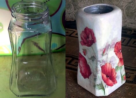 Эта банка кофе всегда привлекала меня своей формой, и я подумала, что из нее могла бы получиться великолепная ваза. Главное убрать резьбу. Чтобы закрыть резьбу, нам понадобится картонный лоток от яиц. Разрываем на небольшие кусочки и заливаем кипятком. Когда бумага чуть остынет и размягчится, разминаем и разрываем ее, превращая в однородную по возможности массу. Смазываем резьбу клеем ПВА, берем бумажную массу, отжимаем излишки воды и прикладываем тонким слоем, смазываем сверху клеем. Не стоит сразу приклеивать толстый слой. Дайте каждому слою подсохнуть. Если приклеить сразу много картона, он может внутри подгнить. Так что стоит подстраховаться. Пока не нужно стремиться делать все слишком аккуратно. Главное следите, чтобы не выходить за границы формы - добавить легче, чем спилить ненужное. Теперь переходим к более "тонкой" работе. Берем сухой гипс, добавляем в равных долях воду и клей ПВА. Замазываем все ямки и пустоты в бумаге, создаем нужную форму. Массу чуть заводим на стекло