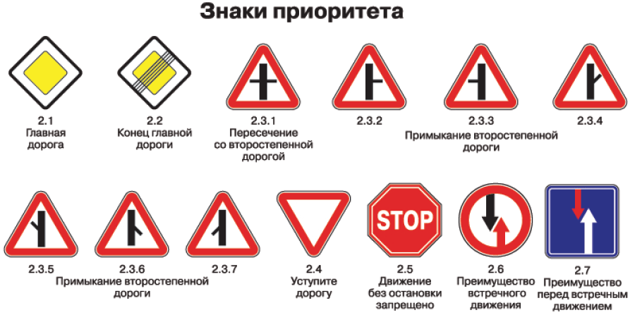 Чтобы было легче запомнить знаки 2.6 и 2.7, можно ориентироваться на красную стрелку, которая запрещает движение нам (знак 2.6) или встречным ТС (знак 2.7.)