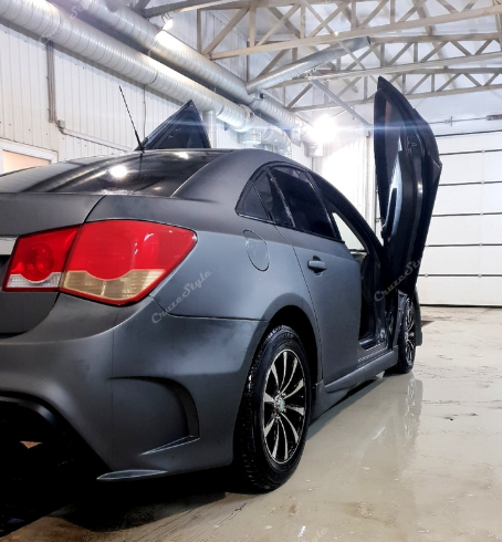 Наверняка, многие автолюбители обращали внимание на яркие и необычные автомобили. В большинстве своём, притягивающие взгляды своей красотой, как правило это спортивные/около спортивные автомобили, на красивых дисках. Но что, если человек не имеющий вкуса захочет выделится ? Или сравнит свой гражданский автомобиль с спортивной , и начнёт цеплять странного рода аксессуары на свой автомобиль, ещё и сомнительного качества . Правильно, на такой тюнинг , а правильнее будет сказать стайлинг, будет совершенно отвратно смотреть. И почему то множество владельцев Шевроле Круз так манит странного рода "стайлинг", который многими считается неуместным. Первый автомобиль, который повергнет Вас в шок. Слепленный обвес из неизвестных материалов, китайские фары и сомнительного качества литьё. А уж эти ламбо-петли , наверняка, открываются с большим трудом , сделаны кустарным способом. Да ещё и посадка затруднена , ведь заводом-изготовителем не было предусмотрено открывание дверей таким способом, и