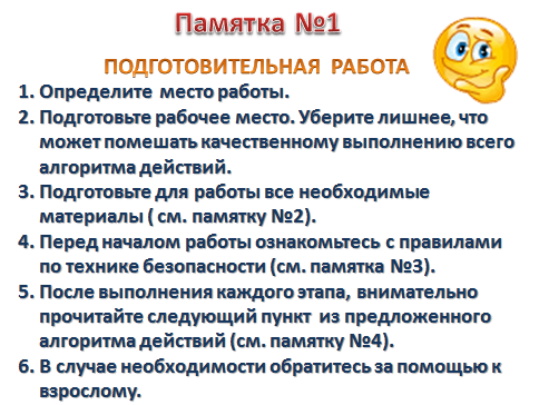 Дорогие читатели! Сегодня 16 апреля 2020 года и уже середина третей недели карантина… Многие из вас хотели бы занять своих детей чем-то интересным, полезным и действенным. Предлагаю окунуться в мир творчества и изготовить «Магический кубик», который в дальнейшем может вам оказать огромную услугу. 2. Подготовка рабочего места заключается в определении самого места для работы и всех необходимых материалов. Для этого предлагаем воспользоваться ребенку второй памяткой (Памятка №2) 3. Приступая к работе с ножницами и клеем напомните правила по технике безопасности (Памятка №3). 4. Перед проклейкой советую на каждой грани «магического кубика» нарисовать (написать) продуманные действия. Например, в целях определения круга возможных действий ребенка можно с ним прописать названия игр, в которые семья может поиграть, либо действия ребенка в первой половине дня и т.п. Варианты «магического кубика «ИГРОМАНИЯ» 1. Лото 1. Коллективно творческое де