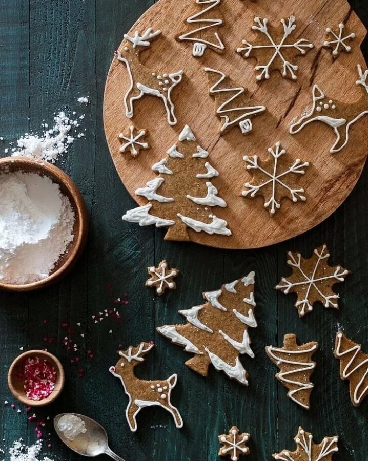 Так как свежий имбирь подорожал, пришло время использовать сухой 😁✨ а это отличный повод приготовить имбирное печенье 🍪 я вам подкинуть рецепт наименее вредный: Сухие ингредиенты ✨ 500 гр полбяной муки ✨ 1 ч.л. разрыхлителя ✨ щепотка соли ✨ 1 ч.л. молотого имбиря ✨ 2 ч. л. корицы ✨ 1 ч. л. соды ✨ щепотка мускатного ореха ✨ немного цедры апельсина ✨ щепотка молодой гвоздики ✨ пол стакана сахара обычного/кокосового/тростникового Влажные ингредиенты ✨ про кружки масла растительное/кокосовое ✨ По вкусу про кружки свежевыжатого апельсинового сока или про кружки миндального молока ✨ 3 ст.л сиропа агавы/финиковый Для глазури ✨ сахарная пудра 10 ст.л ✨ лимонный сок 8 ч.л Соединяем все сухие компоненты и все сырые. Выливаем все к сухой смеси. Замешиваем. Тесто будет мягким, оно не должно прибирать к рукам. Убираем в контейнер и ставим в холодильник примерно на час. Тесто будет как пластилин. Далее рассказывает пласт примерно 5 мм. Вырезаем формы, кладем на пергамент и отправляем в духовку. В