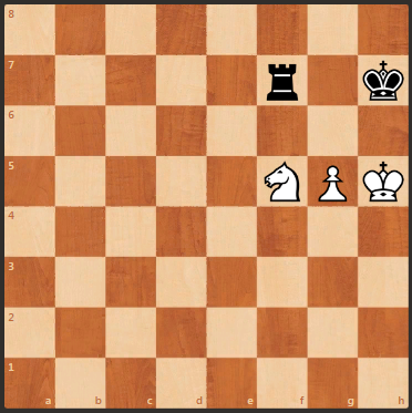 Очередная шахматная задача. Фрагмент партии Федоров - Петухов, 1994 год. У черных ладья, против коня и пешки белых. Черным достаточно отдать ладью за белую пешку, и будет ничья. На шах белой пешкой, черные планируют отойти короле на g8, и далее на взятие ладьи пешкой, забрать ее королем. Но ход белых и они выигрывают, получают перевес. Кому задача проста попробуйте решить задачу как Алехин отдал ферзя и выиграл тут>>> Подписывайтесь на канал, и будут новые интересные задачи Решение смотрите далее в галерее Подписывайтесь на канал и будут новые задачи Выигрыш у белых тут>> Хитрый выигрыш при явном проигрыше тут>>