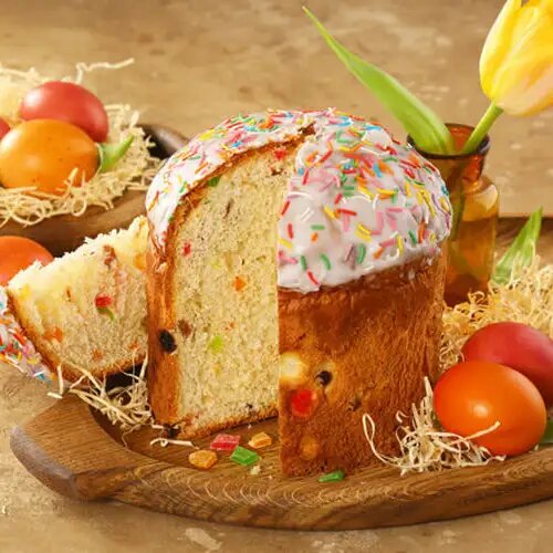 Поверхность кулича, приготовленного по этому рецепту, можно украшать также цукатами, мармеладом, помадкой. Ингредиенты Способ приготовления Как и с чем подавать Остывший кулич сверху смажьте тонким слоем глазури (белок, сахарная пудра, лимонный сок), а оставшуюся глазурь выложите в бумажный конусный конверт, у которого кончик отрежьте ножницами; выдавливая глазурь, сделайте рисунок на куличе. Приятного аппетита!
