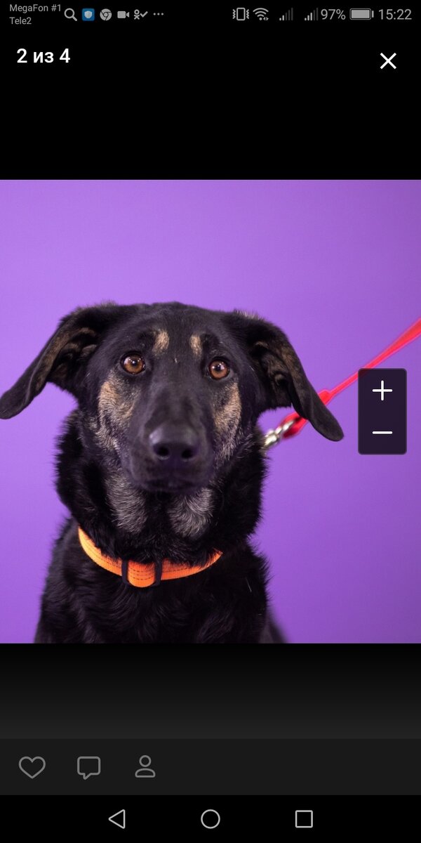 Пепси скоро отпразднует свой первый день рождения. Сейчас она уже привыкла быть выше всех и научилась так грациозно двигаться, что и не верится, что перед нами бывший неуклюжий щенок. Кстати, в детстве Пепси была угольно-чёрной, а потом как будто пересидела на солнце и теперь у неё есть светлые штанишки и сложный цветной узор на мордочке и на шее. Повзрослевшая Пепси осталась застенчивой и трогательной девочкой. Она очень деликатно просит внимания – подходит и нежно бодает головой ладонь, намекая, что не против пообщаться. Но она побаивается показаться навязчивой, так что поначалу мож