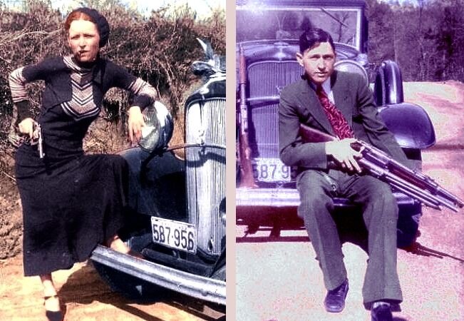 Бонни и Клайд если не единственная то пожалуй первая пара, шлейф преступности за которой ничуть не уступает ореолу романтизма. Да на их счету 12 людских жизней, но америка начала двадцатого века, запомнила их прежде всего как романтичных разбойников любовников. Существует несколько версий того, как Бонни и Клайд впервые встретились. Самой правдоподобной выглядит та, согласно которой Бонни Паркер и Клайд Бэрроу познакомились в январе 1930 года в доме подруги. Они сразу же понравились друг другу; большинство историков считает, что Бонни присоединилась к Клайду, потому что была влюблена в него. Она оставалась ему верным компаньоном во время его преступного кутежа, и ожидала насильственной смерти, которая, по их мнению, была неизбежна. К Бонни и Клайд присоединился Уильям Дэниел Джонс он был другом самого детства хотя ему было всего 16 лет он убедил уезжающих из Далласа Бонни и Клайд взять его с собой на следующий же день Джонс совершил свое первое убийство он и Клайд убили Дойл Джонсона