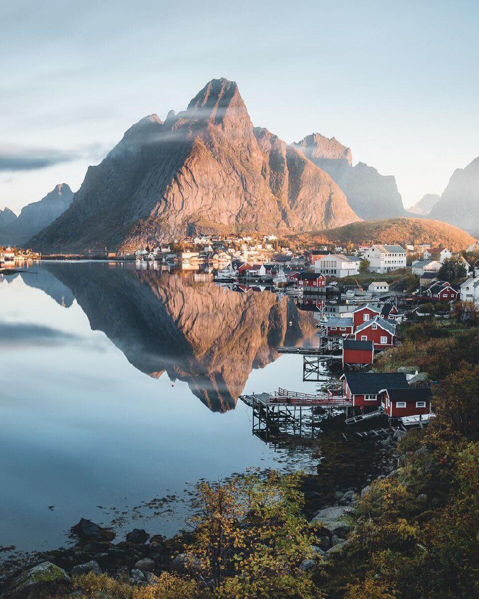 Лофотенские острова, Норвегия Норвегия западает в душу каждому путешественнику, поэтому сегодня перенесемся на Лофотенские острова, в рай для travel фотографов, блогеров, любителей морской рыбалки и просто людей, ценящих красоту природы. Острова расположены в суровых водах Норвежского моря, за Полярным кругом. Это край дикой, необузданной природы, величественных гор, глубоких фьордов, шумных птичьих колоний и длинных песчаных пляжей. Ландшафт этого места потрясает. Мы составили ТОП-5 вещей, которые нужно непременно сделать на Лофотенах, погнали: 1. Посетить музей Викингов “Лофотр” – исторический музей, расположенный в деревушке Борг, являющейся в давние времена поселением викингов. В результате археологических раскопок было воссоздано 83 метровое жилище их вождя Оттара, высотой около 9м. 2. Отправиться на морскую рыбалку из деревушки с лаконичным названием О (дорога заканчивается именно здесь). Даже зимой сюда направляются любители хорошего улова. Без хвоста не останетесь. 3. Объехать