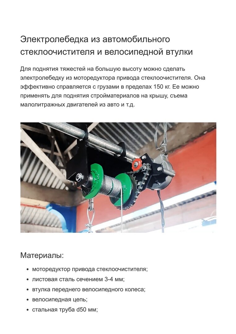 Электролебедка из автомобильного стеклоочистителя и велосипедной втулки