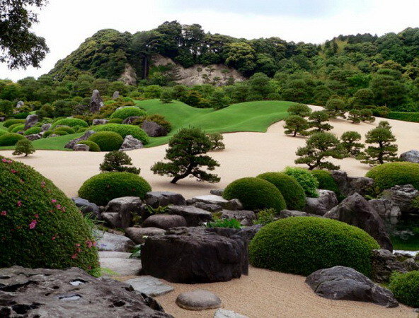 Традиция украшать сад камнями и икусственными скалами из Китая проникла в Японию. Во многих буддистских монастырях в Японии можно увидеть композиции из камней. По канону минимальная композиция - это Три Камня Будды. В центре должен располагаться самый крупный камень, похожий на колонну, а два округлых по бокам от него.