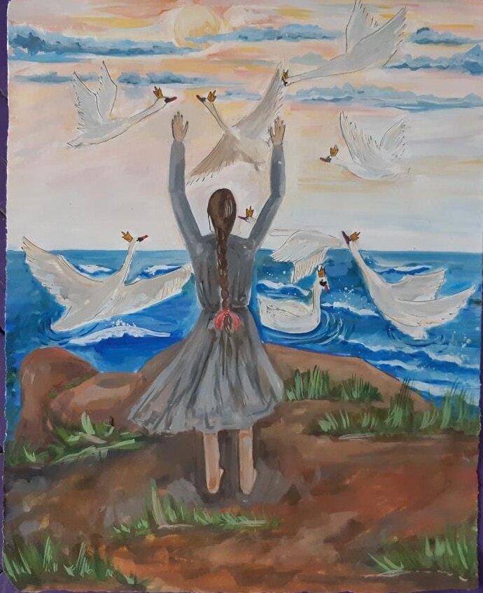 Читая сказки мы погружаемся, вместе с детьми, в волшебный и удивительный мир. Где добро побеждает зло, где любовь, верность и сила духа побеждают все трудности и препятствия. Наши ученики очень любят рисовать иллюстрации по сказкам. Особенно сейчас, когда есть возможность посидеть дома и прочесть многие сказки. Читая сказки мы черпаем из них добро и понимание, чуткость и отзывчивость, стремление стать лучше. Чего нам не хватает в современном мире! Хорошей традицией учеников художественной школы стали выставки рисунков по прочитанным книгам.