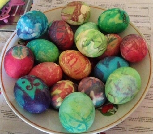 Как красиво покрасить яйца к Пасхе с помощью ниток, бумаги и зелени