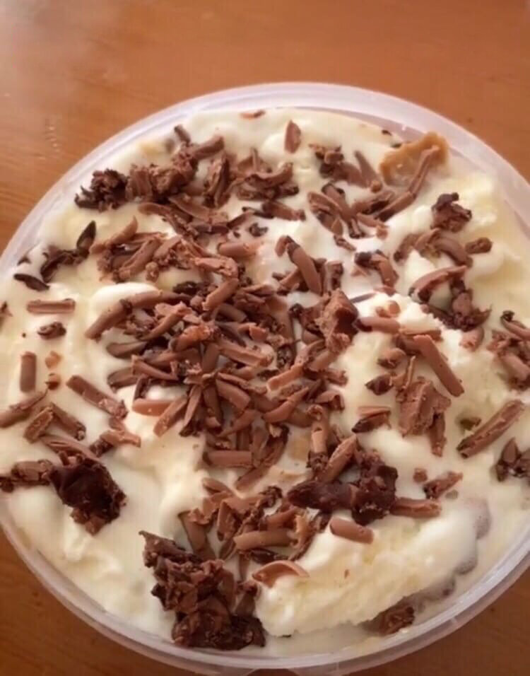 Простой и быстрый рецепт десерта из мороженного с шоколадом и печеньем Ингредиенты: Рецепт: В воду добавляем растворимый кофе, затем в нем "вымачиваем" печенье буквально несколько секунд. Выкладываем печенье первым слоем, сверху кладем мороженное. Третий слой: "кофейное" печенье и варенная сгущенка. Снова слой мороженного и убираем в морозилку на 20-30 минут. По желанию можно украсить шоколадом, орехами или ягодами. Приятного аппетита! Подпишись на канал, поставь лайк, и напиши в комментариях как тебе данный рецепт.